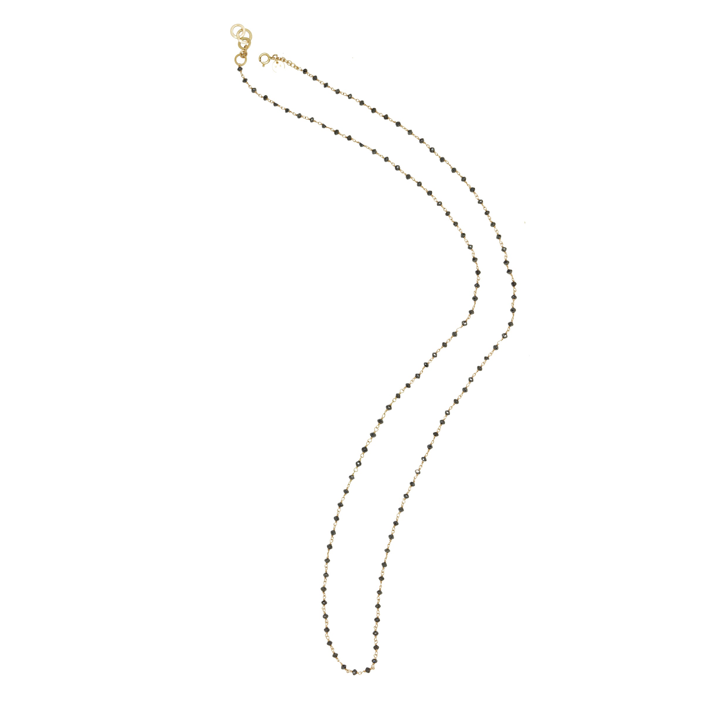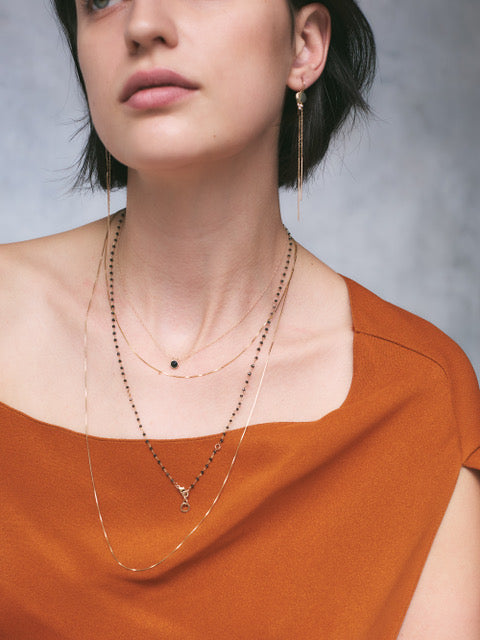 delicate gold necklace with black diamond and 14k yellow gold. can also be wrapped around the wrist for a layered look.