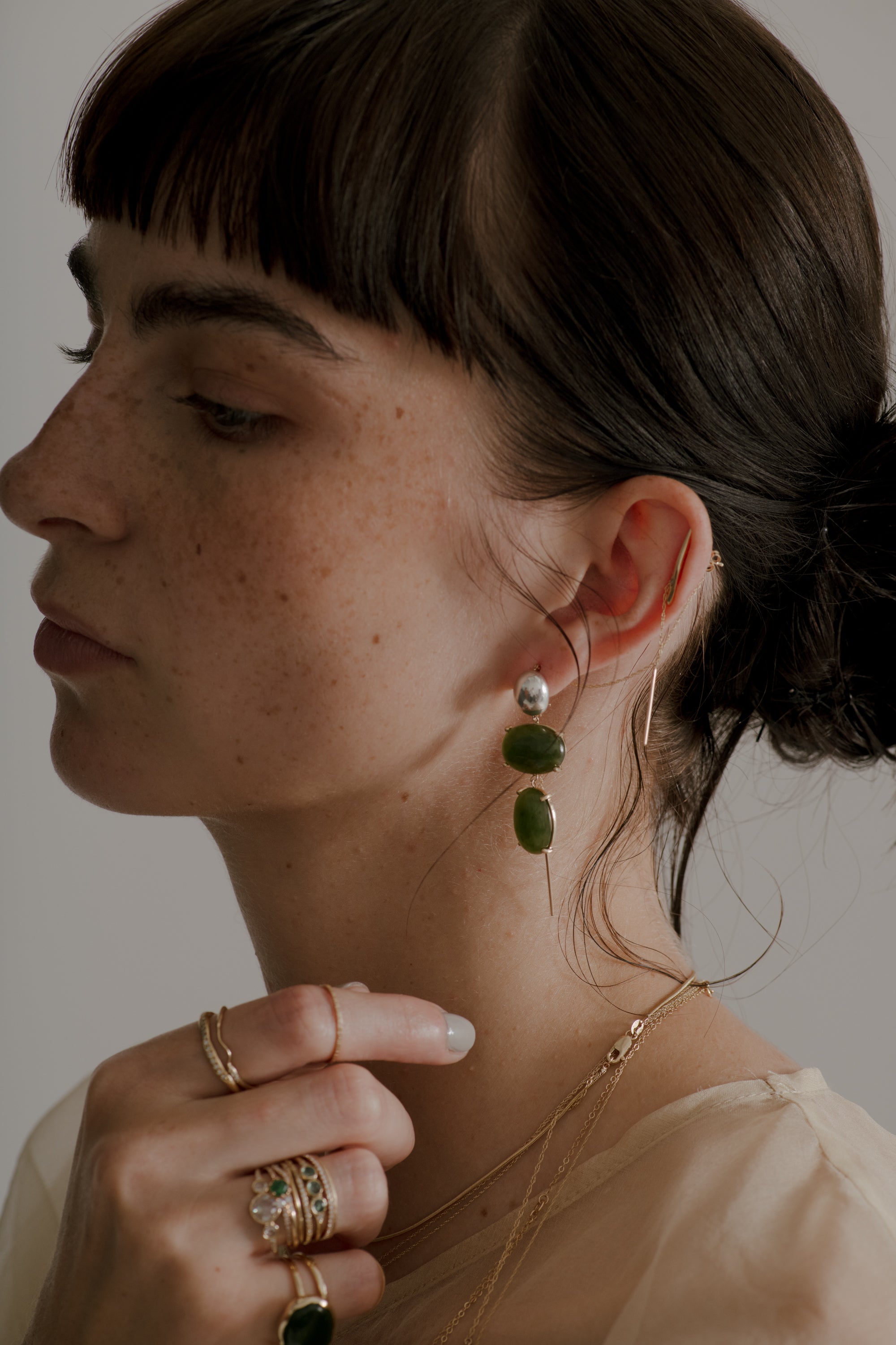 available in black onyx with silver prongs or jade with 14k yellow gold prongs