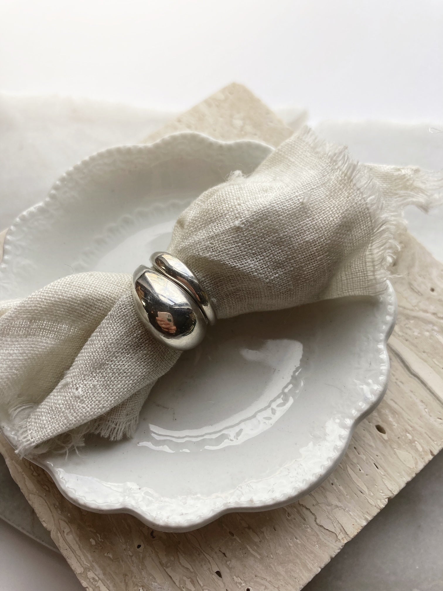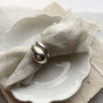sterling silver thick band with an organic wave shape. Looks great paired with our thin wavy bands  and (as shown below) with our Dome ring or worn alone as a pinky ring.