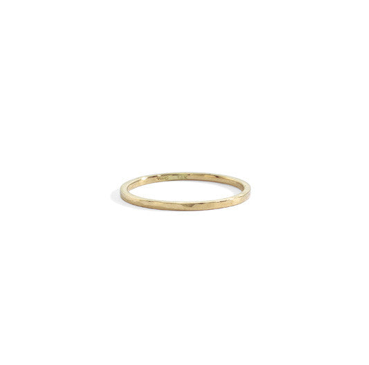 thin stacking band with slight hammered texture and flat edge.