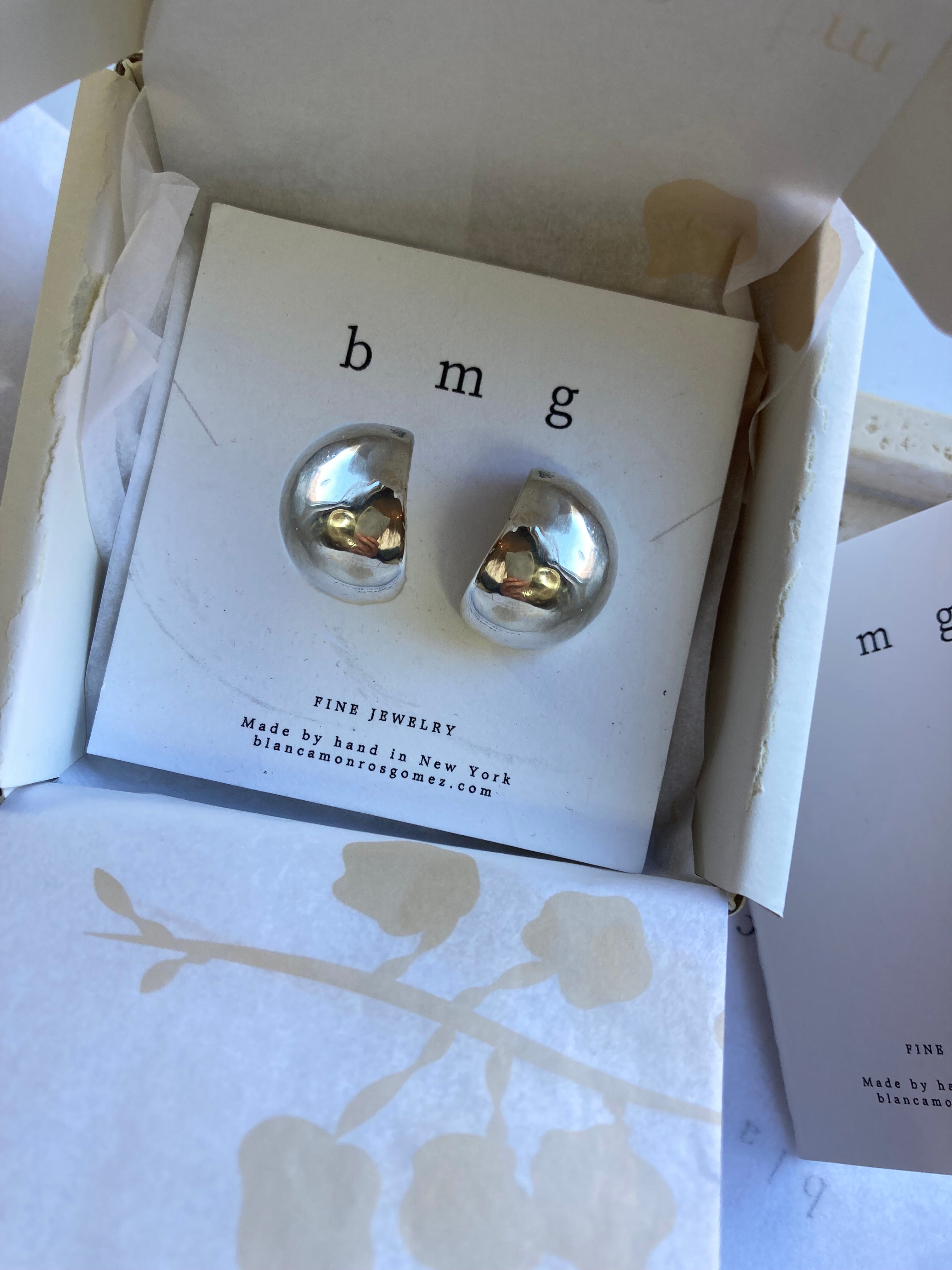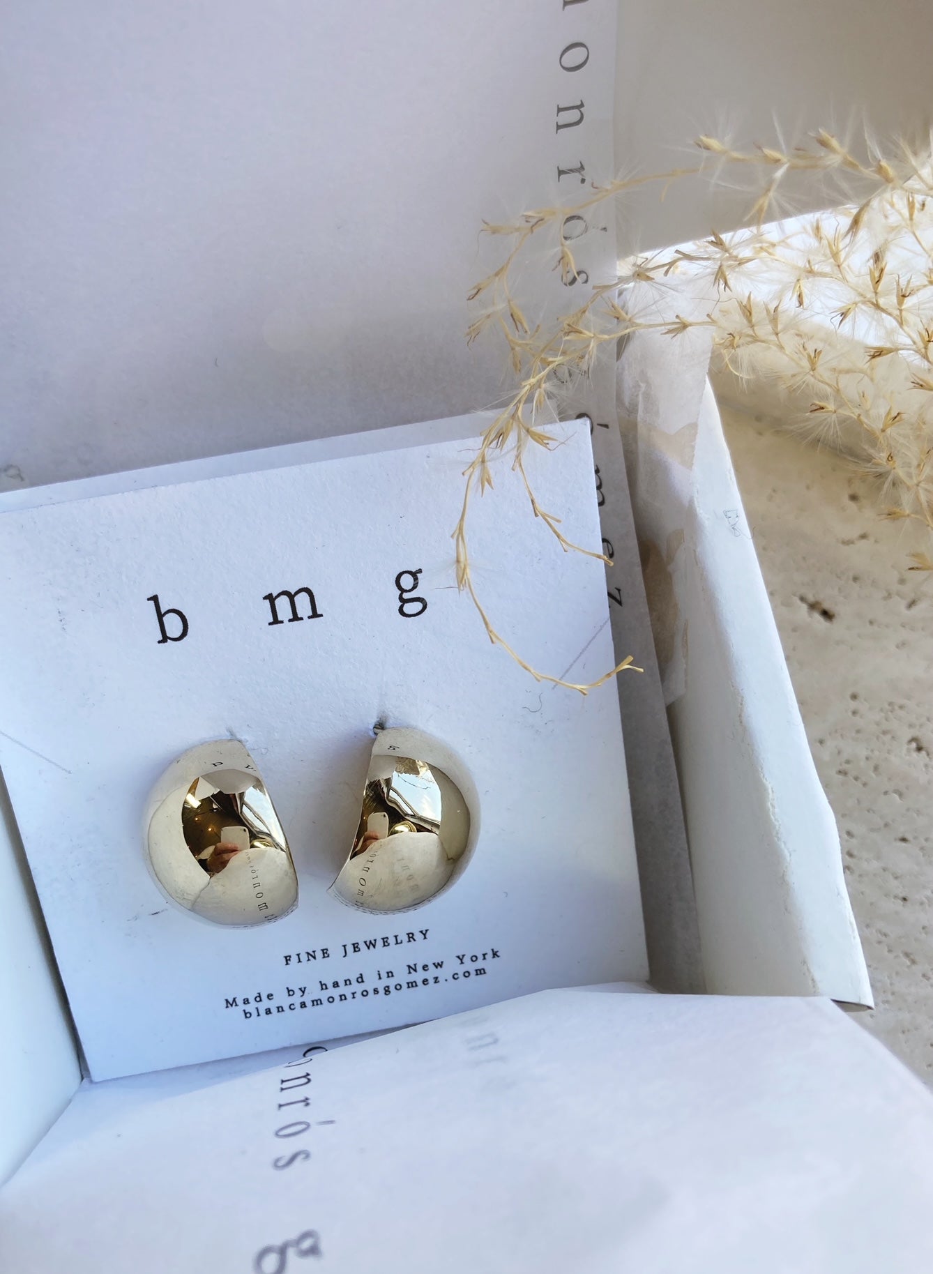 round concave hand forged studs with polished finish. 14ky yellow gold post & backs. sold as a pair.