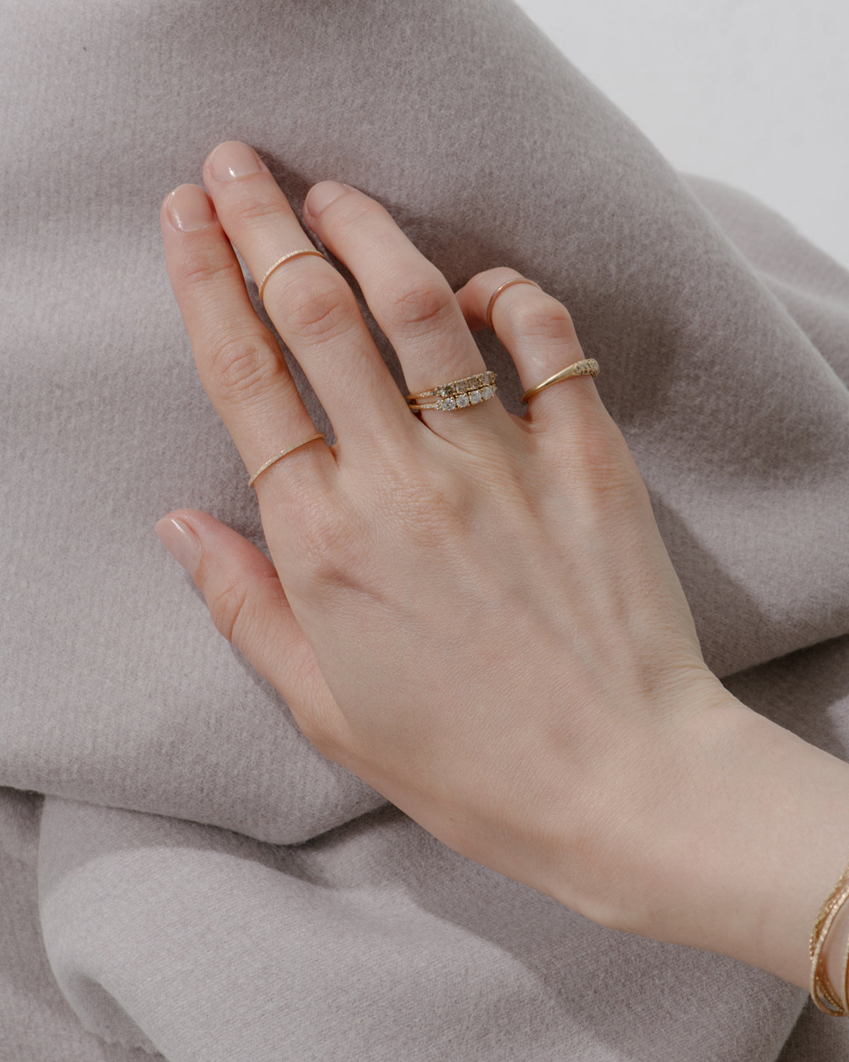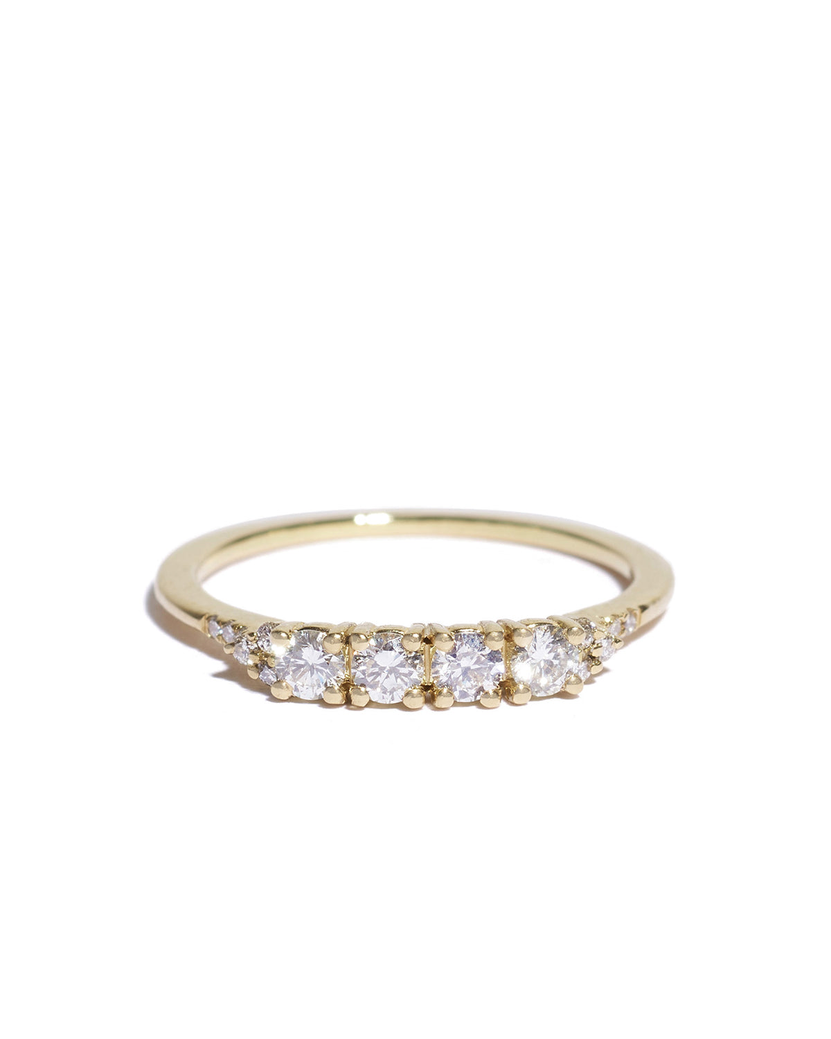 the ophelia ring is an elevated take on our classic triple diamond solitaire. four center white diamonds complemented by white diamonds at either side.