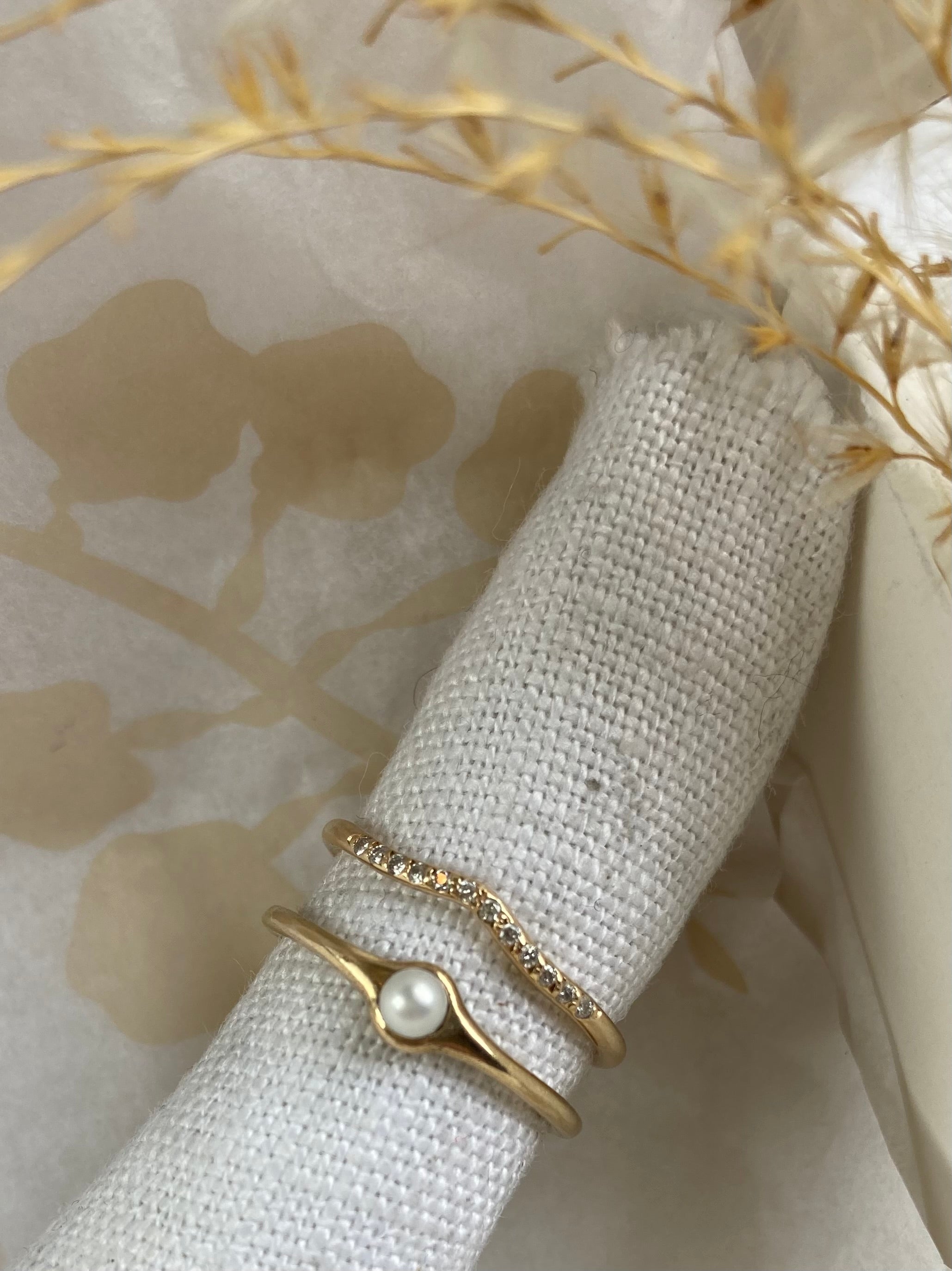 gold ring with 3 mm freshwater pearl. Optional can be nestled between six white diamonds.