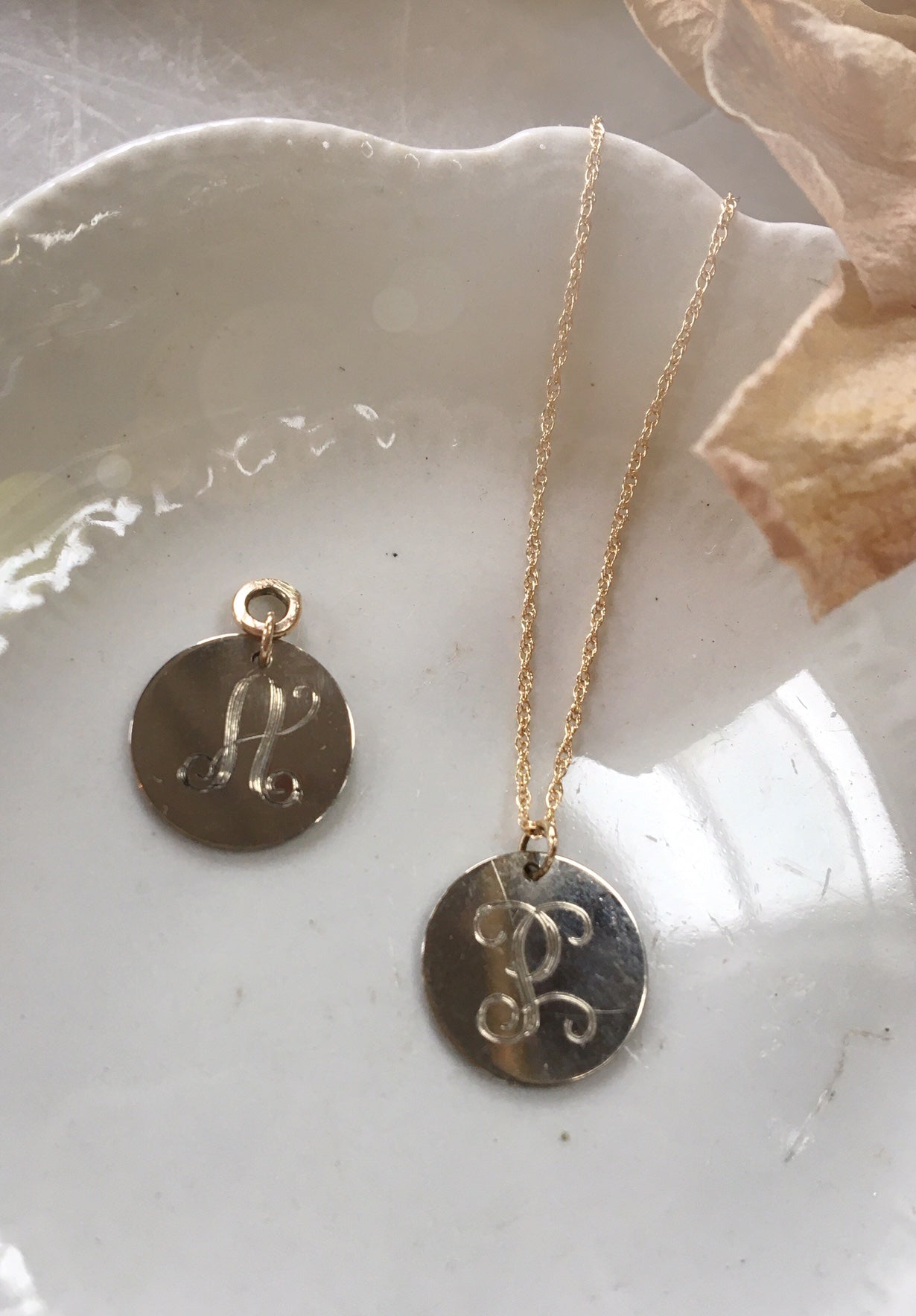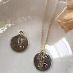 14k  yellow gold disc. each disc can be engraved with one letter. this necklace can be customized with an additional white diamond. Choose either  1 or 2 disc option.