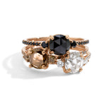 - 6mm rosecut center diamond , 2mm brilliant cut diamonds on each side, and diamonds pavé set