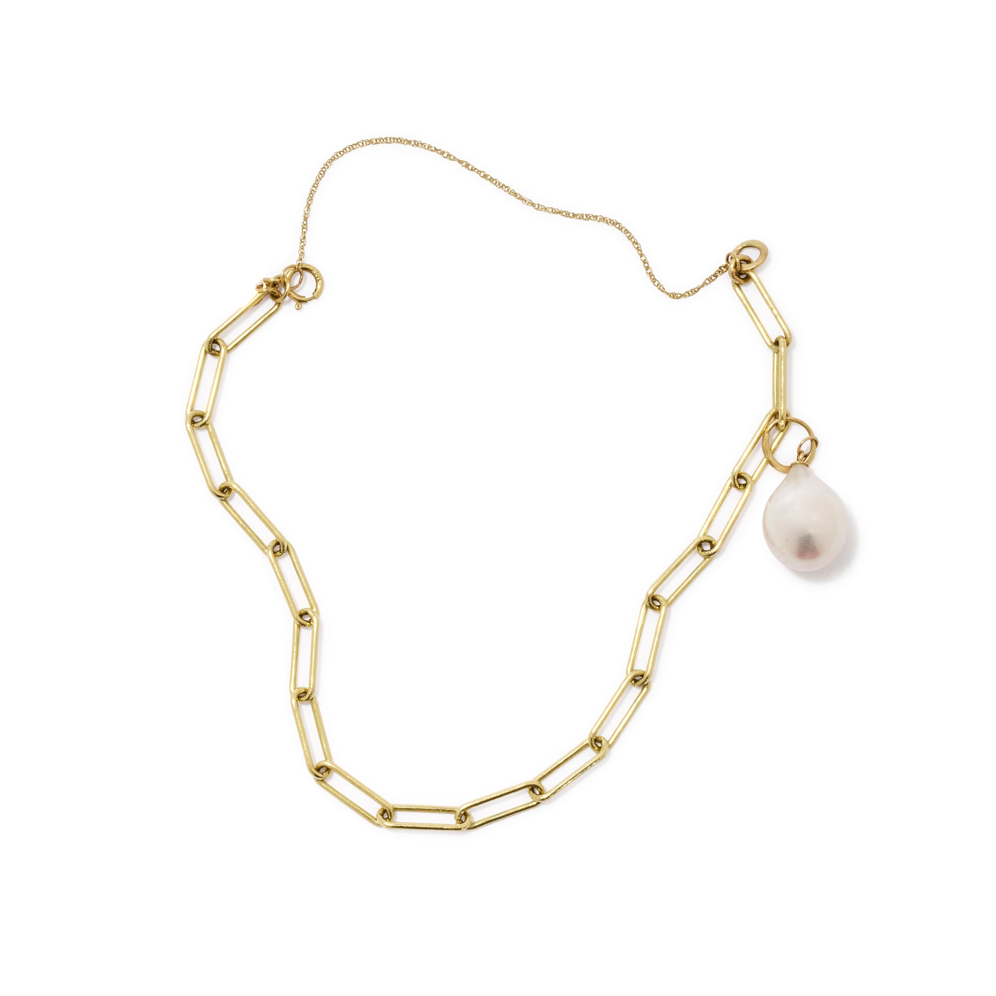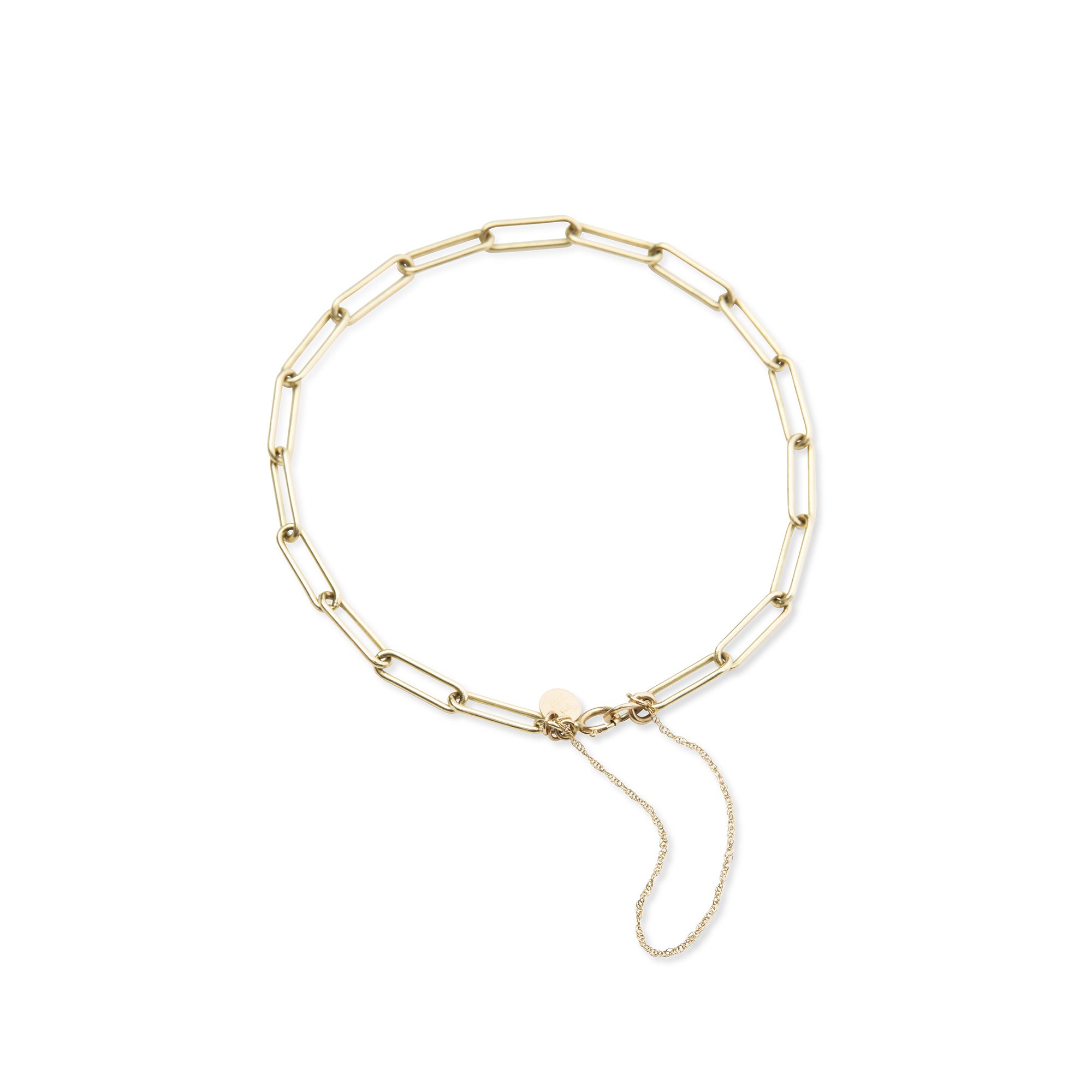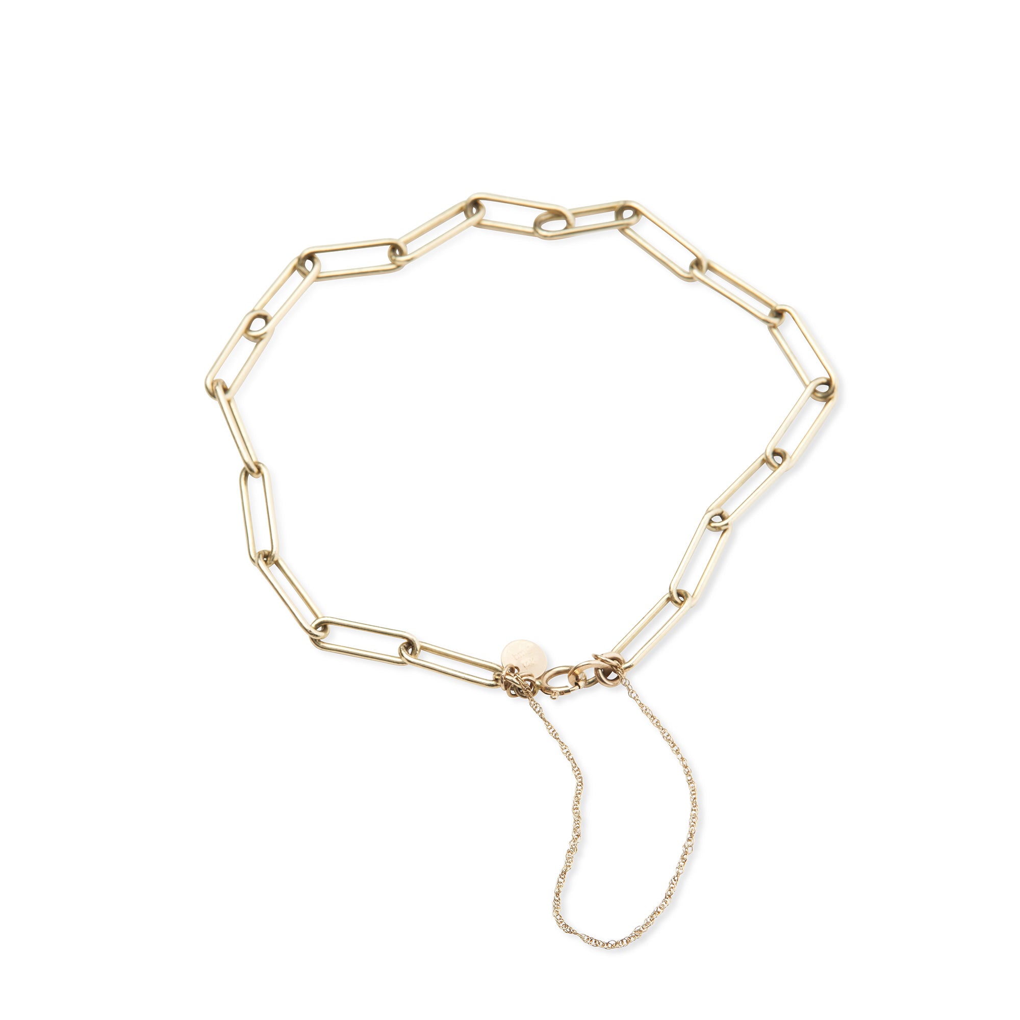 our new classic staple- 14k yellow gold open link chain bracelet with safety chain. total of 7" long with spring clasp.