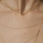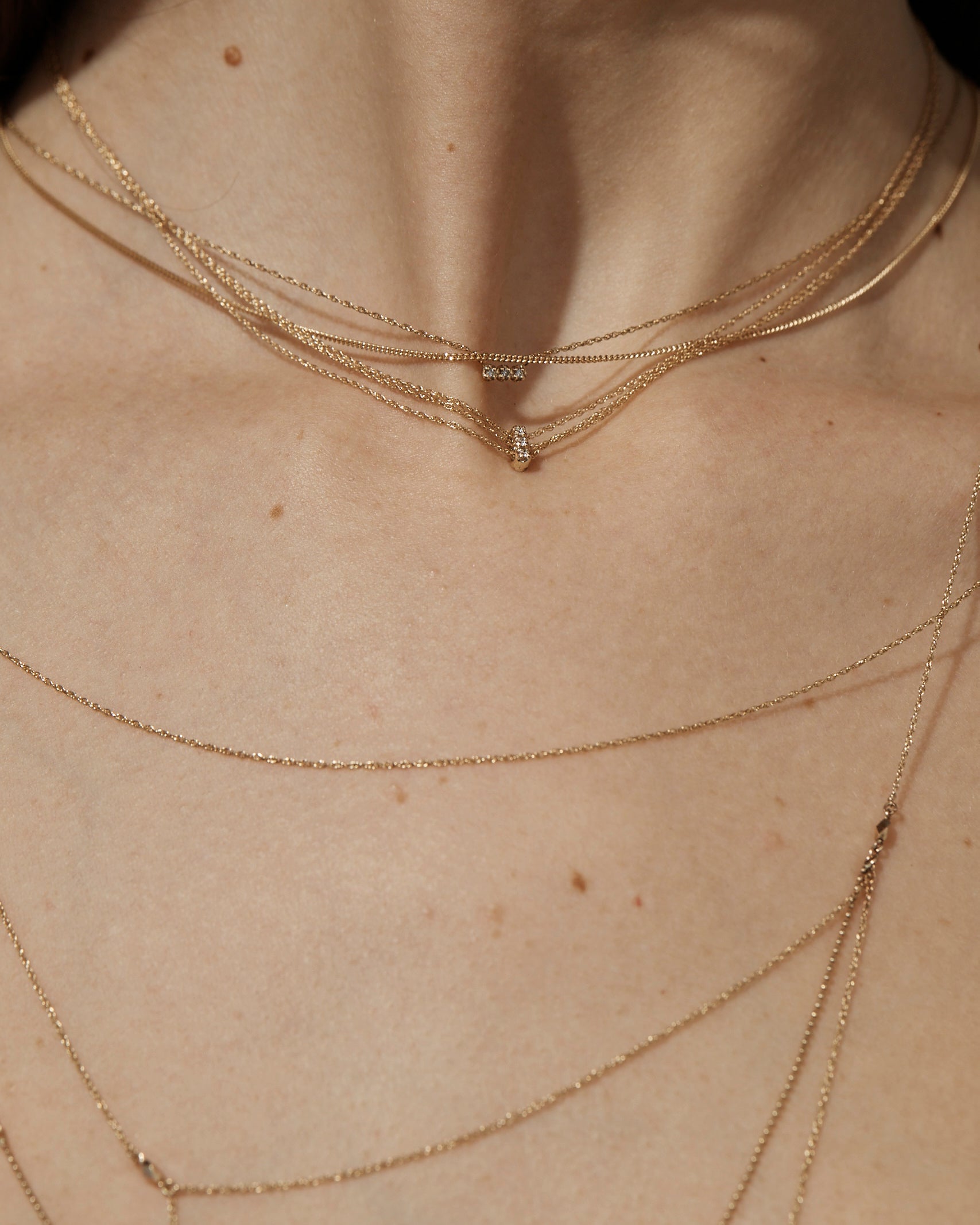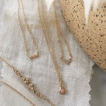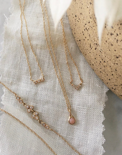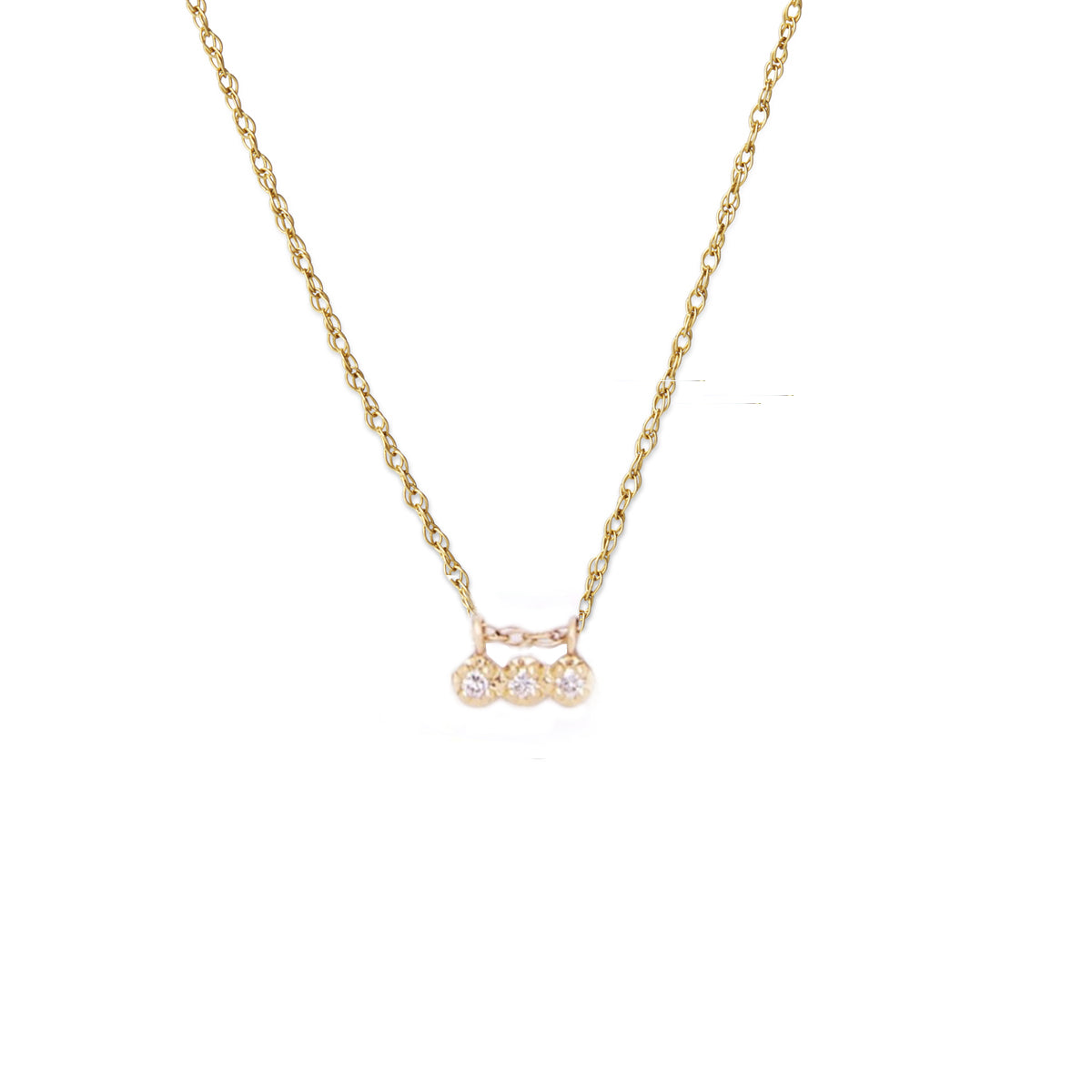 the louisa necklace has three delicate stones and rests right on your collar bone. Handmade in NYC.