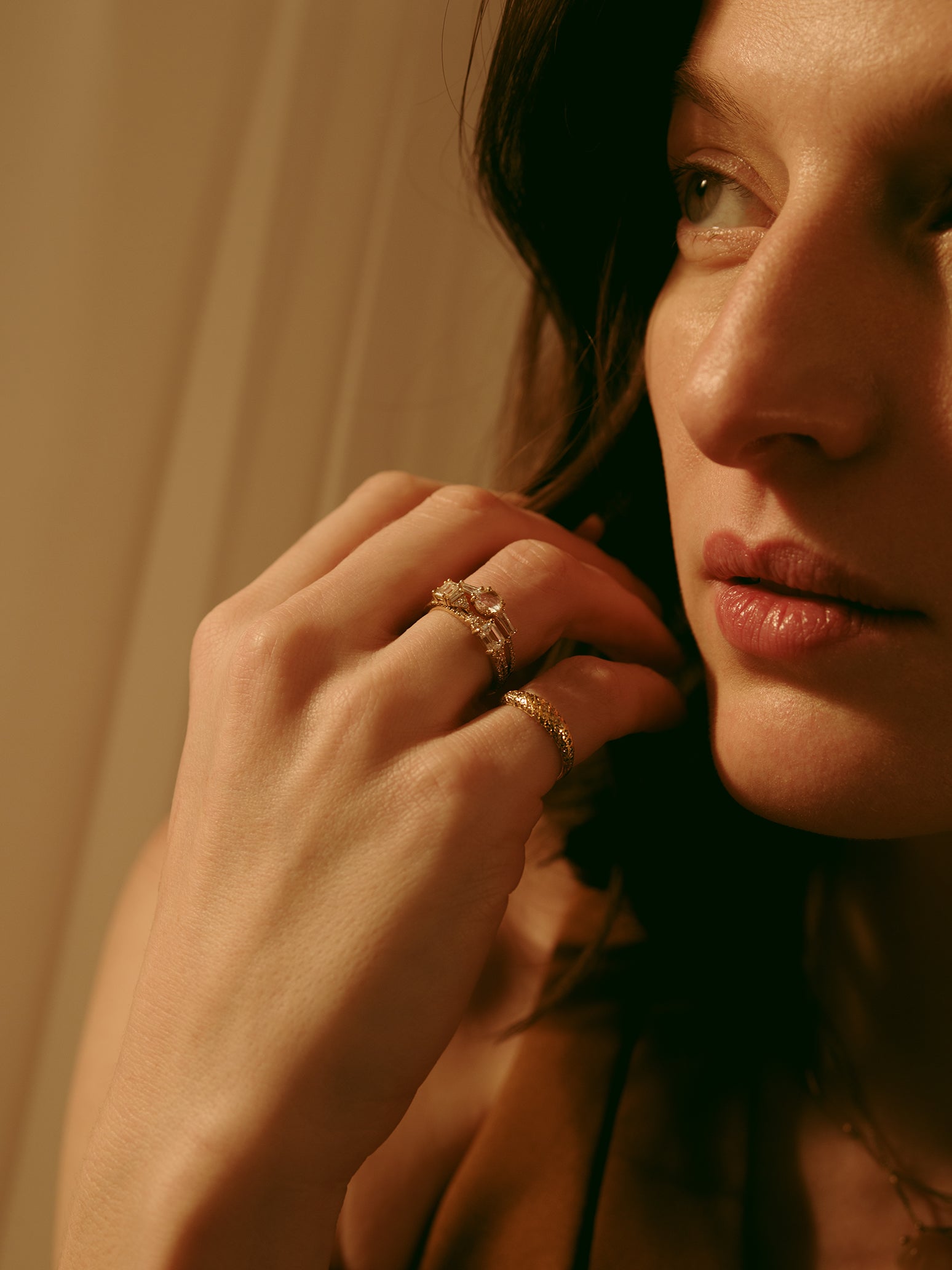 We are committed to responsible and sustainable artistry in every aspect of our production process, incorporating recycled gold and conflict-free diamonds while prioritizing waste reduction whenever possible.