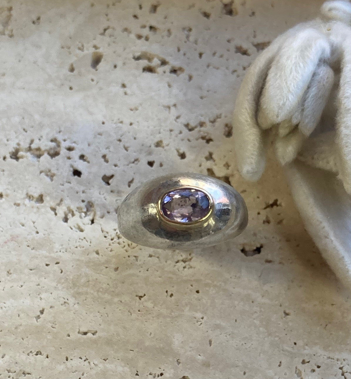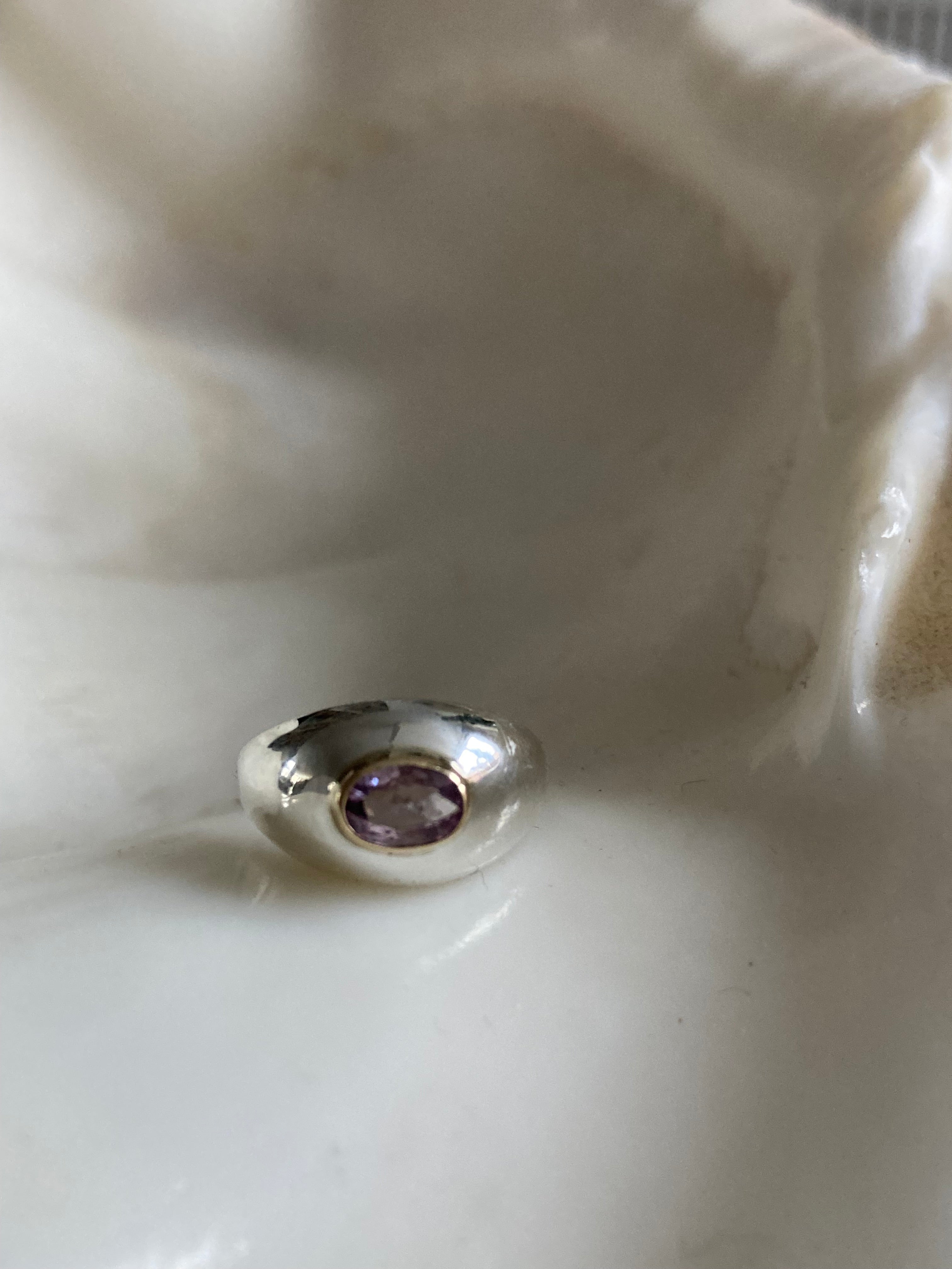 14k yellow gold or sterling silver ring with a dome shaped center.
