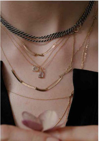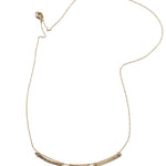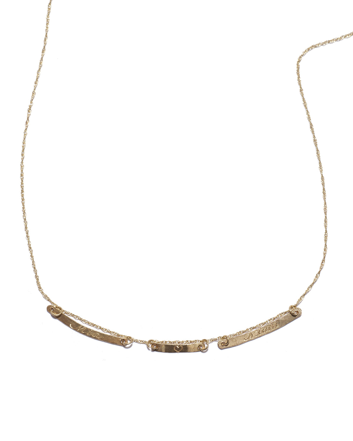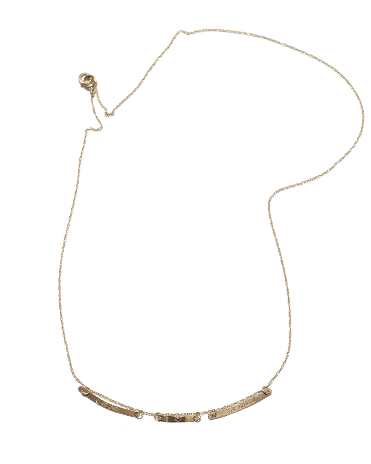 14k yellow gold necklace with three sliding bars.  Custom pencil engraving can be done on any of the bars.